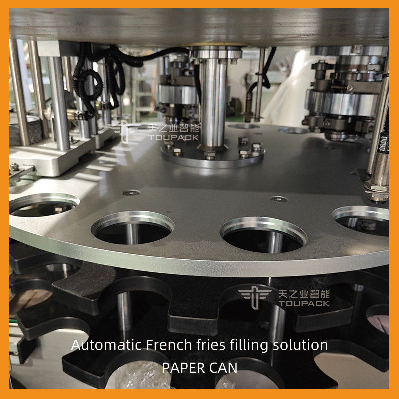 TOUPACK স্বয়ংক্রিয় ভ্যাকুয়াম পটেটো চিপস টিন ক্যানিং মেশিন পাফড ফুড ওয়েজিং এবং ফিলিং সিস্টেম