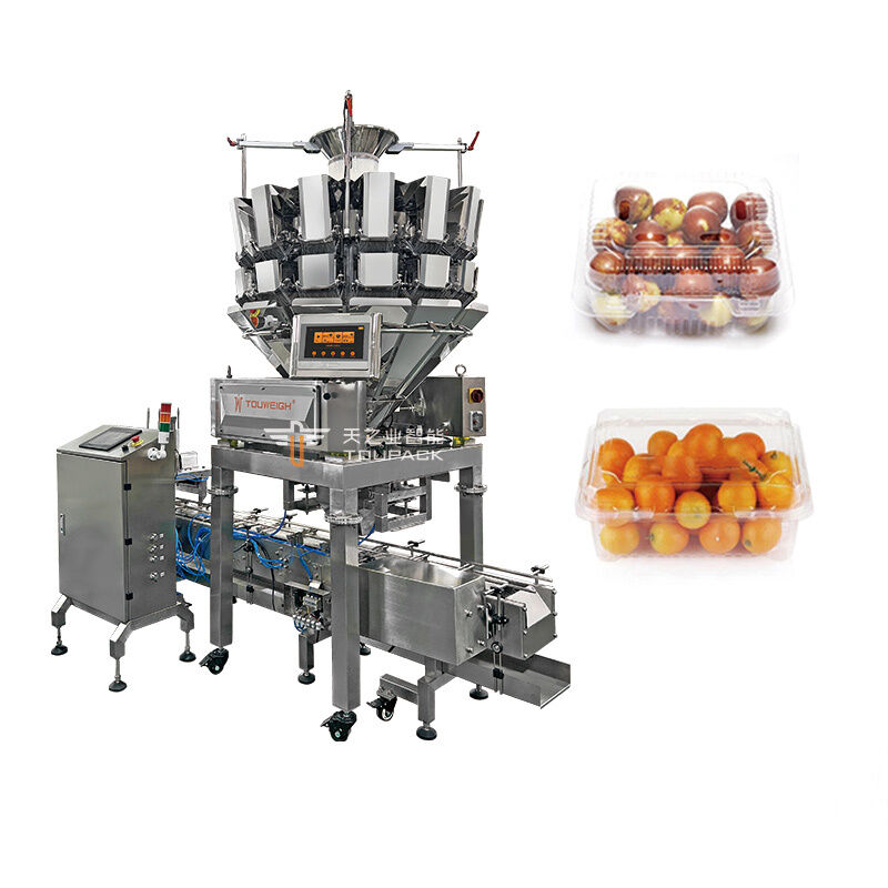 এই সম্পূর্ণ স্বয়ংক্রিয় মেশিনটি বিশেষভাবে ডিজাইন করা হয়েছেক্ল্যামশেল, পাউচ, প্লাস্টিকের বাক্স, ফলের ট্রেএবং অন্যান্য তাজা পণ্যের কন্টেইনারের জন্য। ব্যাপকভাবে ব্যবহৃত হয়ব্লুবেরি, স্ট্রবেরি, চেরি, আঙ্গুর, টমেটো, চেরি টমেটো, মাশরুম, শসা, ছোট সবজিএবং আরও অনেক কিছুর জন্য।